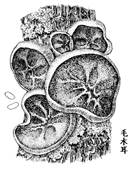 2、毛木耳的子实体较木耳厚,不孕面绒毛浓密、较长。余与木耳类同。气微,味淡。