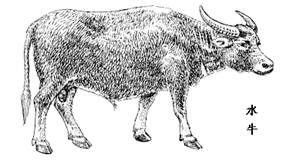 2、水牛的体比黄牛肥大,长达2.5m以上。角较长大而扁,上有很多切纹,颈短,腰腹隆凸。四肢较短,蹄较大。皮厚无汗腺,毛粗而短,体前部较密,后背及胸腹各部较疏。体色大多灰黑色,但亦有黄褐色或白色的。
