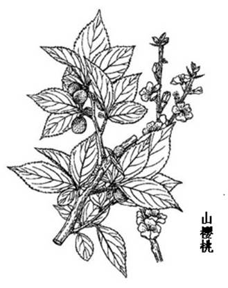 山樱桃属落叶灌木,通常0.3-1m,稀呈小乔木状。小枝紫褐色或灰褐色,幼枝密被黄色绒毛,或无毛。单叶互生,或于短枝上簇生;叶柄长2-8mm,被绒毛;托叶线形,被长柔毛;叶片卵状椭圆形或倒卵状椭圆形,长2-7cm,宽1-3.5cm,先端急尖或渐尖,基部楔形,有急尖或粗锐锯齿,上面暗绿或深绿色,被疏柔毛,下面灰绿色,密被灰色柔毛或渐变稀疏;侧脉4-7对。花两性;单生或两朵簇生;花叶同开或近先叶开放;花梗长2.5mm或近无梗;萼片5,三角状卵形,内外两面被短柔毛或无毛,基部连合成管状或杯状,外被短柔毛;花瓣5,白色或粉红色,倒卵形,先端圆钝;雄蕊20-25,短于花瓣;花柱与雄蕊近等长或稍长;子房被毛或仅先端或基部被毛。核果近球形,红色,直径5-12mm。花期4-5月。果期6-9月。