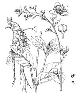 栌兰属一年生草本,高达60cm,肉质,无毛。主根粗壮有分枝,外表棕褐色。茎直立,有分枝,圆柱形,基部稍木质化。叶互生;倒卵形或倒卵状长圆形,长5-7cm,宽2.5-3.5cm,先端渐尖或钝圆,全缘,基部渐狭而成短柄。圆锥花序顶生或侧生;二歧状分枝,小枝及花梗基部均具苞片;花小两性,淡紫红色,直径约6mm;萼片2,早落;花瓣5,倒卵形或椭圆形;雄蕊10枚以上;子房球形,花柱线形,柱头3深裂,先端外展而微弯。蒴果近球形,直径约4mm,3瓣裂,熟时灰褐色。种子多数,细小,扁圆形,黑色有光泽,表面具细腺点。花期6-7月,果期9-10月。