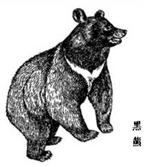1、黑熊的体形较大,长1.5-1.7m,体重约150kg。头部宽圆。吻部短而尖;鼻端裸露,眼小;耳较长且被有长毛,伸出头顶两侧。颈部短粗,两侧毛特别长。胸部有一倒人字形白斑。尾很短。毛较一致漆黑色,有光泽。四肢粗健,前后足均具5趾,前足腕垫宽大与掌垫相连,后足跖垫亦宽大且肥厚,前宽后窄,内侧中部无毛间隔。具爪。除其鼻面部棕色、下颌白色、倒人字白斑外,全身均为黑色并带有光泽。