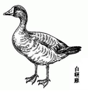1.白额雁的雄鸟体长约70cm,雌鸟较小。嘴扁平,被有软皮,肉色或玫瑰色,尖端具角质嘴甲,灰色或白色。虹膜棕色。嘴基和前额皆有白色横纹。头和颈、背部羽毛棕黑,羽缘灰白色。尾羽亦棕黑色,羽缘白色。胸、腹部棕灰色,布有不规则黑斑。幼鸟无此黑斑,嘴基亦无白纹。腿和脚橙黄色,有4趾,前3趾间具蹼,后1趾小而不着地,蹼淡黄色;爪短而钝,白色或黑色。