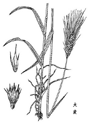 大麦为禾本科植物大麦的颖果。果实呈梭形,长8-12mm,直径1-3mm。表面淡黄色,背面为外稃包围,具5脉,先端长芒已断落;腹面为内稃包围,有1条纵沟。质硬。断面粉性,白色。气无,味微甘。