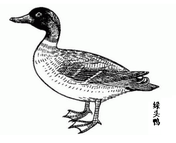 绿头鸭的体长约60cm。体重1000g左右。雄鸟头和颈辉绿色,颈下有一白环。上背和肩暗灰褐色,密杂以黑褐色纤细横斑,并镶着棕黄色羽缘;下背转为黑褐,羽缘较浅。腰和尾上覆羽黑色,并着金属绿光辉。两翅大都灰褐色;翼镜蓝紫色,其前后缘均为绒黑色,更外缀以白色狭边,三色相衬极为醒目。尾羽大部分白色,仅中央4枚色黑而上卷。胸栗色,羽缘浅棕;下胸的两侧、肩羽及胁大多灰白;腹淡灰,尾下覆羽绒黑色。雌鸟尾羽不卷,体黄褐色,并杂有暗褐色斑点。虹膜红褐色;嘴呈黄绿郄,嘴甲黑色;脚橙黄色,趾间有蹼,爪黑色。