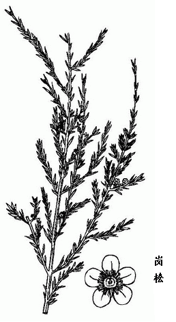 岗松属灌木或小乔木。嫩枝纤细,多分枝。叶小,对生;无柄,或有短柄;叶片狭线形或线形,长5-10mm,宽约1mm,先端尖,上面有沟,下面突起,有透明油腺点;中脉1条,无侧脉。花小,白色,单生于叶腋内;苞片早落;花梗长1-1.5mm;萼管钟状,长约1.5mm,萼齿5,细小三角形;花瓣5,圆形,长约1.5mm,基部狭窄成短柄;雄蕊10枚或稍少,成对与萼齿对生;子房下位,3室,花柱短,宿存。蒴果小,长约2mm;种子扁平,有角。花期7-8月,果期9-11月。