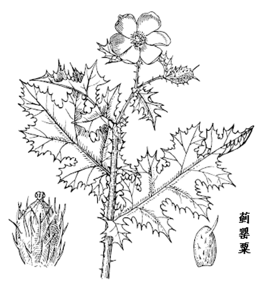 化合物成分:别隐品碱(allocryptopine),原阿片碱(protopine),小檗碱(berberine),二氢血根碱(dihydrosanguinarine),二氢白屈菜红碱(dihydrochelerythrine),血根碱(sanguinarine),白屈菜红碱(chelerythrine),去甲白屈菜红碱(norchelerythrine),隐品碱(cryptopine),左旋华紫堇碱(cheilanthifolin),左旋β-斯氏紫堇碱甲羟化物(β-scoulerine methohydroxide),左旋α-金罂粟碱甲羟化物(α-stylopine methohydroxide),左旋β-金罂粟碱甲羟化物(β-stylopine methohydroxide),6-丙酮基二氢血根碱(6-acetonyl dihydrosanguinarine),6-丙酮基二氢白屈菜红碱(6-acetonyl dihydrochelerythrine),网叶番荔枝碱(reticuline),唐松福林碱(thalifoline),丙酮基斑点亚洲罂粟米定碱(acetonyl-reframidine),丙酮基-隐掌叶防己碱(acetonyl-muramine),氧化白毛茛分碱(oxyhydrastinine),异鼠李素(isorhamnetin),异鼠李素-3-葡萄糖甙(isorhamnetin-3-glucoside),异鼠李素-3,7-二葡萄糖甙(isorhamnetin-3,7-diglucoside),3-甲氧基槲皮素(3-methoxyquercetin)及香草酸(vanillic acid)。