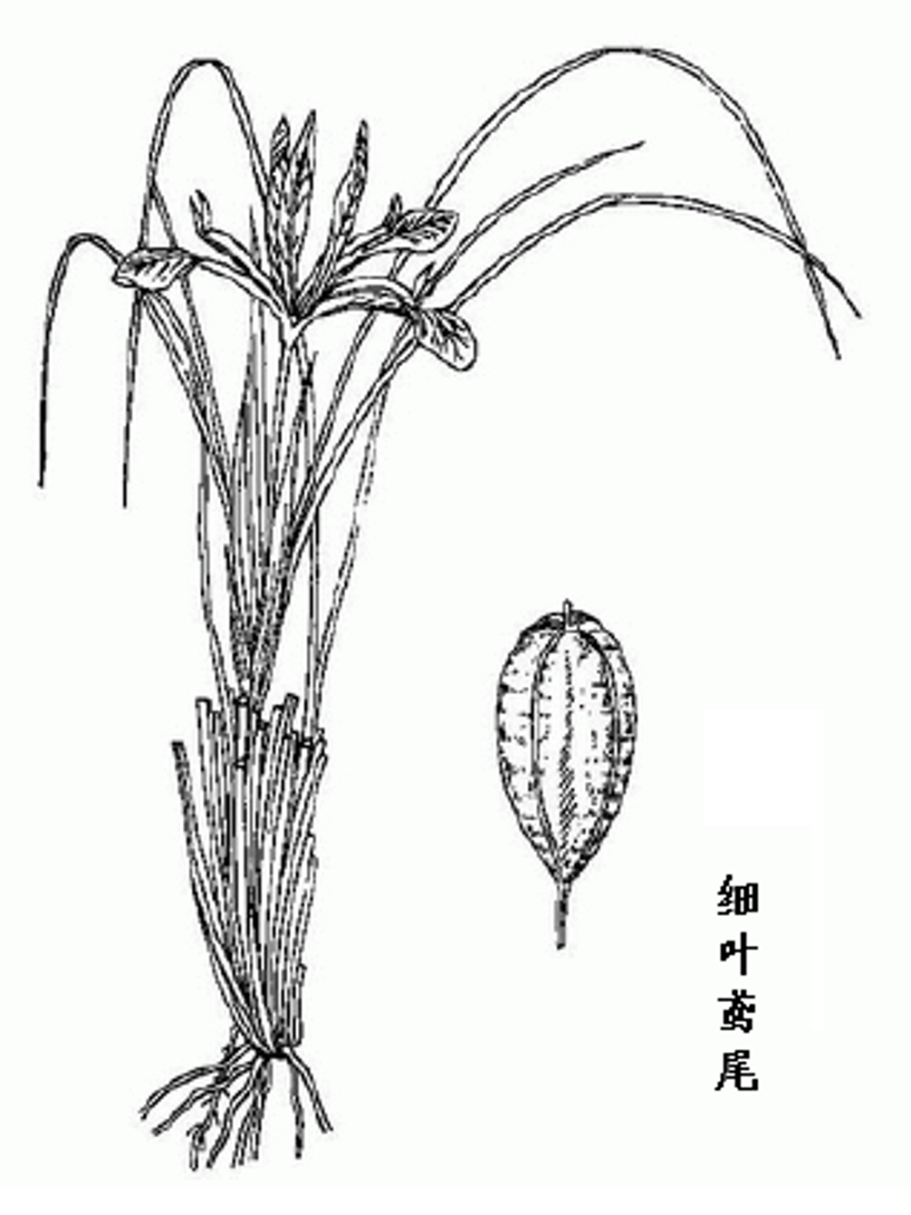 细叶鸢尾属多年生密丛草本,高10-35cm。植株基部存留有红褐色或黄棕色折断的老叶叶鞘。根茎块状,短而硬,黑褐色。根坚硬,细长,分枝少。叶基生;叶片细条状至丝状,坚韧,长20-70cm,宽1.5-2cm;无明显的中脉。花茎长10-20cm,具鞘状退化叶;苞片4枚,披针形,长5-10cm,内有花2-3朵;花梗细,长3-4mm;花蓝紫色,直径约7cm,花被裂片6,长4.5-5.5cm,花被管细长;雄蕊3;子房下位,花柱3分枝,花瓣状,先端2裂;子房细圆柱形,长0.7-1.2cm,直径约2mm。蒴果卵圆状,长3.5-4.5cm,直径1.2-1.8cm;种子深棕褐色。花期4-5月,果期8-9月。