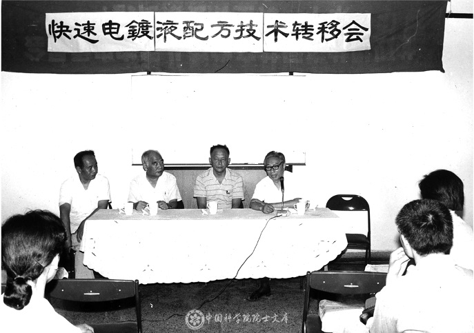 黄耀曾(右一)在快速电镀液配方技术转移会上发言