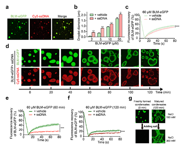 图1 ssDNA促进BLM相分离并形成动态阻滞的BLM/ssDNA共凝聚体