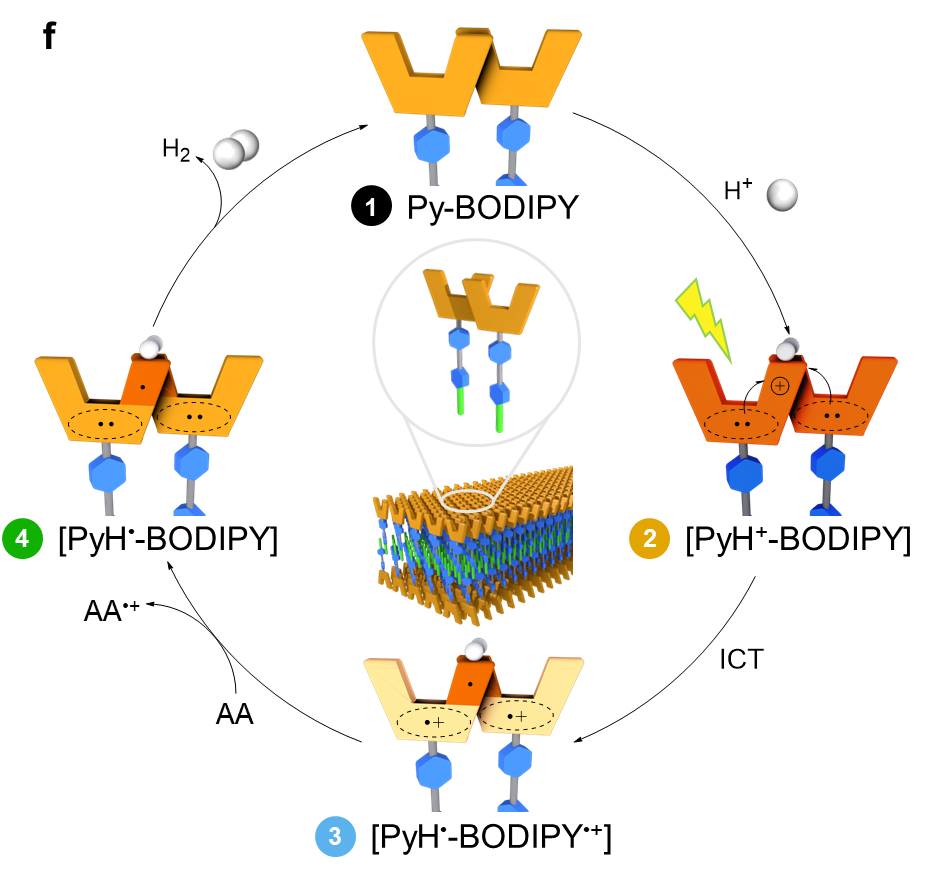 图1. 仿绿小体含氟BODIPY纳米带光合组装体的制备与制氢示意图。