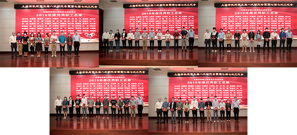 会上还举行了第二届“SIOC岗位建功先进个人”、2019年度职工年度工作考核优秀职工的颁奖仪式。工会副主席陆海峰和人力资源处处长杨慧娜分别宣读了表彰决定,所长唐勇和党委书记胡金波共同为2017-2019年度工作中业绩显著、贡献突出的10位“SIOC岗位建功先进个人”获得者、8位SIOC岗位建功先进个人”提名奖获得者颁发了荣誉证书和奖金,为68位2019年度职工工作考核优秀职工颁发了荣誉证书。