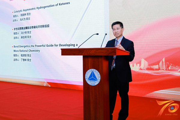 下午召开了纪念建所70周年学术报告会。程津培院士、周其林院士和冯小明院士分别作了题为“Bond Energetics, the Powerful Guide for Developing a More Rational Chemistry”、“Catalytic Asymmetric Hydrogenation of Ketones”和“手性双氮氧金属配合物催化不对称反应”的精彩学术报告,并为上海有机所建所70周年送上诚挚的祝福。丁奎岭院士、麻生明院士、马大为院士主持分别主持报告。上海有机所副所长游书力代表研究所进行开场致辞。