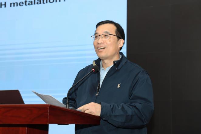 余金权教授在报告中回顾了其团队自2002年以来针对“如何实现不对称碳氢键的金属化”这一极具挑战性科学问题开展的持续探索。围绕该核心难题,通过持续推动催化剂创新,他们成功发展出多种新型手性双功能配体催化剂,并融合经典不对称催化策略,实现了羧酸、亚胺、酰胺、醇、酮和酯等多种底物的高难度不对称碳氢键活化。余金权教授指出,其团队开发的碳氢键活化方法,正推动有机合成化学逻辑的范式转变,已被国内外学界广泛应用,并在多个复杂天然产物与生物活性分子的合成中展现出卓越的步骤经济性。余金权教授强调,这些新型催化剂不仅能实现反应位点的精准控制,也为挑战性极高的分子编辑提供了强大工具。