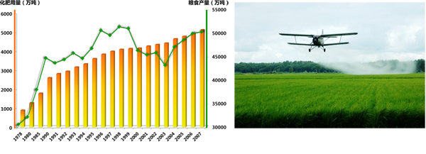 合成氨和合成尿素的发展为农作物的生长提供了充足的养料,而合成化学对农业的贡献远不止于此。大量事实表明,合成材料如农用薄膜、滴灌管材、合成农药等同样为现代农业做出了巨大贡献。如果不施用农药,世界粮食产量将因受病、虫、草害的影响而损失1/3。举例来说,在美国,如果不使用农药,农作物和畜产品将减产30%,而农产品的价格将增长50%—70%;由于美国是最大的粮食出口国,这个幅度的下降,会造成世界性的饥荒。不止如此,如果要弥补单产下降引起的粮食供给就必须开垦大量的土地,这必然会造成自然环境的破坏,更多的天然雨林或者森林植被要被用来进行农业生产。如果不用除草剂,人工除草不仅会大大增加农产品的生产成本,土壤流失的风险也将急剧增加;如果不用杀菌剂,不仅花生的产量将下降60%多,由病菌产生的天然毒素(毒性可能强于某些农药)的量也可能会急剧增加,对人类的健康产生威胁;随着世界越来越开放,外来生物的入侵愈演愈烈,如果一个外来生物入侵,不用化学农药应急处理,而使用生物方法则很难在短期内实现完全控制。除了依靠改良品种、提高栽培技术、应用转基因技术以及使用农机、化肥等措施以外,使用农药这一不可或缺的生产资料来防治病虫草害对农作物的肆虐,是提高农作物单产的一个十分重要的手段。我国粮食作物由于使用化学农药,每年挽回的粮食损失达5 800万吨。对于我国这样一个人口众多、耕地紧张的大国,农药在缓解人口与粮食的矛盾中发挥了极其重要的作用(图3)。