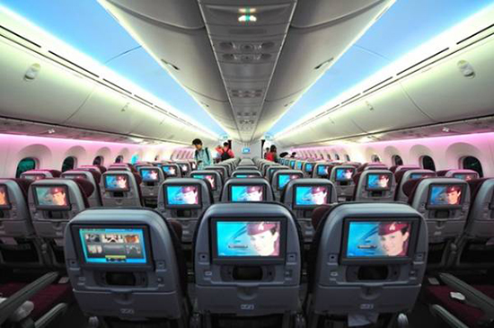 如图所示:波音“梦幻客机”的内部:从这里我们能够看到未来高分子聚合物的身影。