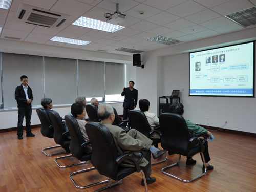 在中国科学院天然产物有机化学重点实验室展厅内,室主任赵刚研究员结合幻灯片简要介绍了该实验室的基本情况,以及与人类日常生活息息相关的天然产物方面的研究成果。