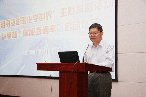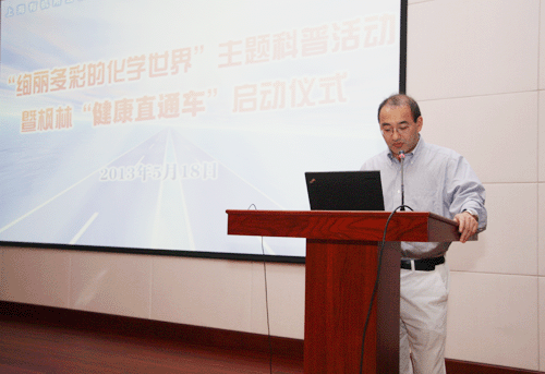 开幕式由唐勇副所长主持,他介绍了与会嘉宾,并向他们长期以来对有机所工作的大力支持表示衷心感谢,对他们的到来表示热烈欢迎。马大为副所长为本次活动致辞,他介绍了有机所近年来科普工作的进展情况,并希望通过开展此类大型科普活动,争取以更加丰富、生动有趣的内容和形式,宣传化学对人类社会的贡献,提高公众的科学素养,激发青年人对化学的热爱,为我国的科普教育事业贡献绵薄之力。随后,王珏副区长,金伟红局长,宋开成副主任,沈韬副局长共同启动枫林“健康直通车”项目的logo。黄立波主任为居民代表颁发积分加油卡。有机所郏静芳书记,枫林街道办事处刘艺副主任,零陵中学张孜燕副校长共同签署了三方健康资源共享协议。