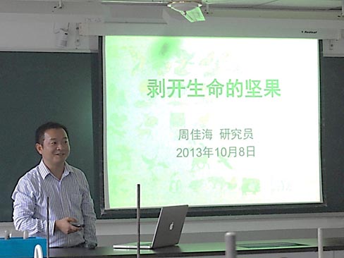 108日下午,中国科学院上海有机化学研究所“魅力有机化学”科普拓展课程在上海市零陵中学再次开课。此次由生命有机化学国家重点实验室周佳海研究员授课,主题为“剥开生命的坚果---分析化学漫谈”。