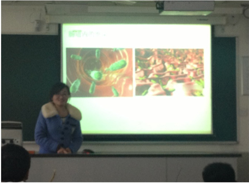 “食物腐烂,大家都知道是真菌和细菌等微生物造成的结果,可是大家是否知道我们人体内也有相当多的细菌,如果将其排成一列的话能绕地球两圈!”宋玉姣简简单单的开场白,向同学们展示了让人惊讶的信息。那么这些个体微小而数量庞大,繁殖速度十分惊人的细菌都有什么作用呢?细菌带给人类的都是负面的影响吗?带着这些疑问,宋玉姣向同学们讲述了三个有意思的故事。第一个故事“细菌的计划生育”,繁殖速度惊人的细菌是怎么做到控制增殖的呢?科学家发现细菌之间存在广泛的交流方式,常见的是一种密度感应调控。每个细菌都会释放出一些信号分子,随着细菌密度的增加,信号分子的浓度也会增加,当信号分子增加到一定浓度时,就会激发细菌体内某些基因的表达。比如费氏弧菌密度到达一定值时会发光,从而告诉自己的同伴实行计划生育,严格控制生育数量。科学家们据此利用在基因水平上改造过、对抗生素敏感细菌控制难以消灭的细菌的数量,再使用抗生素杀死细菌,达到“以毒攻毒”的目的。第二个“好细菌和坏细菌”的故事则向大家介绍了乳酸菌、酵母菌等有益的细菌,以及让胖人“痛苦”瘦人“无奈”的“肥胖细菌”和引发肠炎的大肠杆菌等坏细菌。那么,科学家有什么方法来更好的利用好细菌或者改造坏细菌呢?第三个故事“细菌与人类的合作”,以胰岛素为例介绍了大肠杆菌在基因工程中的应用。用于治疗糖尿病的胰岛素最早来自于猪胰岛素,由于和人胰岛素仍然有所不同通常会导致排异反应,而利用基因重组技术采用大肠杆菌表达得到的第二代人胰岛素和第三代胰岛素类似物则可以很好的解决这个问题。大肠杆菌是基因工程中常用的表达菌,科学家通过对独立于细菌基因组的遗传物质——质粒的操作让细菌为人类服务。