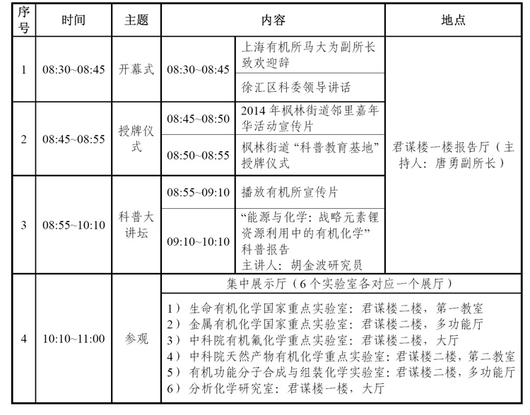 上海有机所第三届“绚丽多彩的化学世界”主题科普开放日活动议程