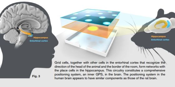 近期采用大脑成像技术进行的研究,以及对接受神经外科手术的病患进行的研究结果,已经提供了确凿的证据,证明类似的位置与网格神经细胞同样存在于人类的大脑之中。患有阿尔茨海默综合征的病患,他们大脑的海马体以及内嗅皮层区域常常会在患病过程的早期遭受影响,这样的病人常常会发生迷路,并且难以识别周围环境。对于大脑定位系统机制的了解或许将在未来帮助这类患者改善由于空间记忆受损而造成的困扰。 对大脑定位系统机制的发现颠覆了我们此前的认识,显示了特定的细胞群相互协同工作如何能够达成更加高等的认知功能。这一成果打开了理解其他认知过程的窗口,如记忆,思维以及进行规划的能力。
