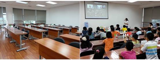 动手实验环节,在志愿者的引导下,孩子们对不同的水样(自来水、蒸馏水、矿泉水)进行了对比实验,明显的实验一度让孩子们兴奋不已,课堂上一片欢声笑语!