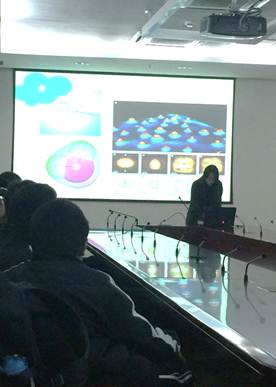 核磁共振和晶体X衍射之后得到的数据最终需要进行数据分析,使用相应的电脑软件可以将它们的空间结构模型搭建出来。因此我们在电脑中展示了乙醇,葡糖糖,维生素B2,维生素B2合成酶N端结构蛋白与维生素B2的复合物的立体结构,以及核糖体的晶体结构。由简单到复杂,由小分子到大分子甚至超大分子结构向同学们展示了结构生物学的一个精彩世界。结构中能够很直观的看到分子中的每一个原子的空间分布,分子相互作用时,原子之间的距离在0.4纳米尺度之内.可以看到疏水相互作用,盐桥相互作用,以及氢键.说明了结构生物学的意义.另外还向同学们介绍了试验室的主演仪器设备,大致讲解了纯化蛋白的步骤和方法.有扩增DNA的PCR仪;进行分子克隆用的超净台,培养箱,摇床;蛋白纯化的柱子,akta蛋白纯化仪,蛋白电泳仪等。