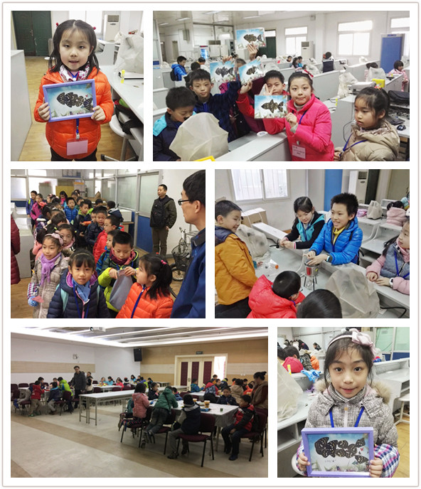 在下午的“昆虫主题体验”中,营员们在昆虫博物馆老师的带领下首先参观了博物馆的展厅,包括序厅、昆虫生命厅、昆虫世界厅、昆虫与人类厅和昆虫文化厅,从昆虫的身体结构、生长发育、栖息环境、与自然界关系、与人类关系等各个方面全面了解了昆虫世界,并见到了国家一级保护动物金斑喙凤蝶,国家二级保护动物二尾凤蝶、三尾凤蝶、中华虎凤蝶和阿波罗绢蝶,以及日本、马来西亚、印度尼西亚和美国等国的国蝶,同时还零距离接触了价值“36万”的“光明女神”以及令人毛骨悚然的猫头鹰蝴蝶。在对昆虫的基本情况有了了解之后,营员们在互动实验室参与了蝴蝶贺卡DIY以及蜂蜡润唇膏制作等体验活动。在蝴蝶贺卡DIY环节,营员们亲自动手,在老师的指导下完成了取蝴蝶翅膀、粘蝴蝶身体、画蝴蝶触角、塑封作品等步骤。不一会,一张张独一无二的贺卡便通过自己的双手制作完成。小朋友们都爱不释手,不仅满意自己的劳动成果,更体会到了创意的乐趣和动手的快乐。在蜂蜡润唇膏制作环节,营员们大胆动手,仔细操作,当一支支由蜂蜡、初榨植物油、维E等成分组成的天然蜂蜡润唇膏完成时,不仅在冬天保护了嘴唇,更让小朋友们收获了一份体验、一份快乐。