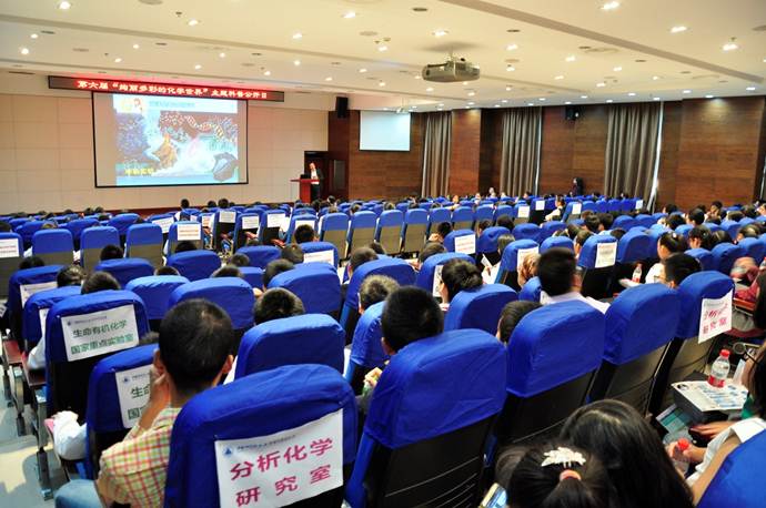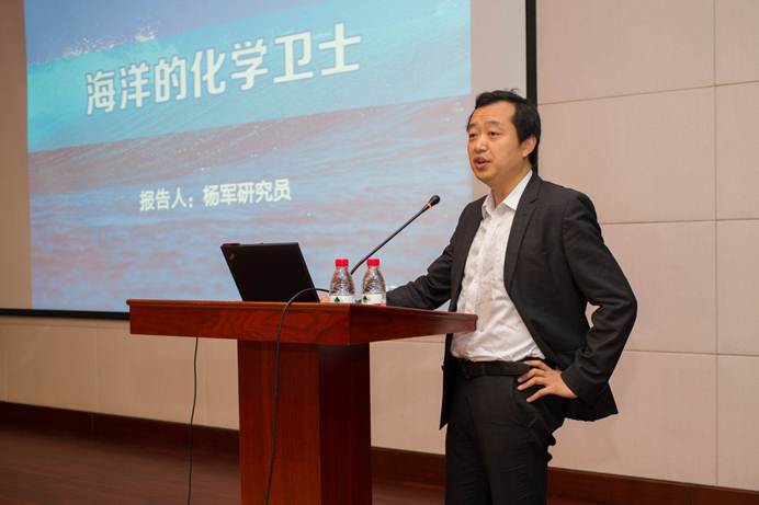 开幕式之后,上海有机所杨军研究员作了题为《海洋的化学卫士》的科普报告。杨军研究员从海洋环境开始讲起,海洋是地球最珍贵的资源,是地球生命的摇篮,随着社会不断发展,人类对海洋的资源越来越依赖,但是另一方面人类的经济活动对于海洋环境造成了愈演愈烈的污染和破坏,而环境的污染最终将对人类的生活造成重大恶劣影响。接下来,杨军从污水、塑料、辐射、油污和金属污染五个方面,通过视频、图片、举例的方式让同学们直观地了解到污染的海洋给人类的生存和发展带来的不利后果,例如水俣病、墨西哥湾泄油、福岛核电站泄露等海洋污染事件所造成的生态损伤和经济损失不可估量。最后,杨军介绍了如何利用合成化学这一武器来对抗海洋污染,把更美好的海洋留给未来。精彩的报告引得同学们阵阵欢呼。