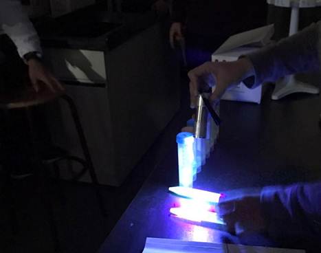 接着进入下半部分,两位科普志愿者带着同学们动手体验纯化绿色荧光蛋白的过程,以及结构生物学研究中的一个小实验——观察蛋白晶体。