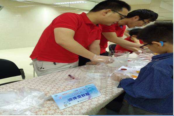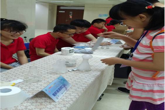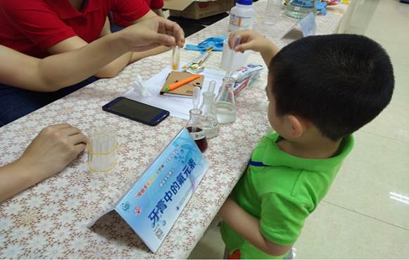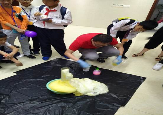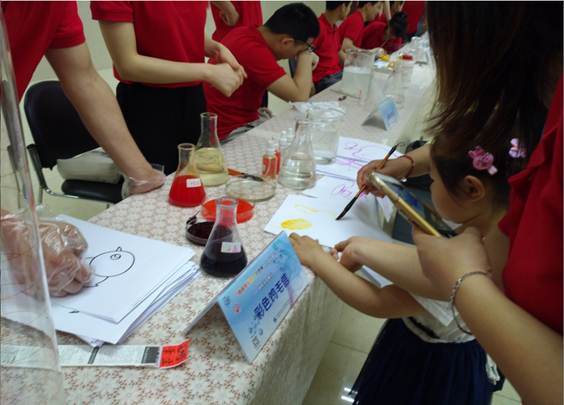 多个实验多次补充实验原料后,很多同学们仍然是意犹未尽。9小实验中具有氟化学特色实验,又有大家可以亲自操作的实验,让参观者真正感受化学的美妙。展厅内气氛活跃热烈,参观者乐于询问,在满足他们的好奇心时,志愿者们以通俗的语言讲解其中的原因,增加他们对化学的兴趣,实现了良好的互动。活动结束时小朋友们依依不舍相约明年再见。