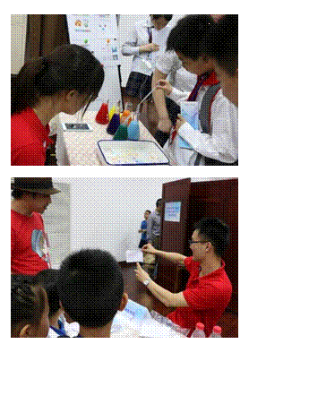实验室的志愿者们经过辛苦用心的筹备,向来参观的小朋友和他们的家长展示了魅力无限的趣味性化学实验:经典实验界面缩聚-聚合物拉丝、具有实验室研究特色的“分子的“薁”秘“、目前很是吸引人们眼球的3D打印技术、让小朋友们惊喜无限的秘密书信、魔术师的妙手执壶、缤纷靓丽的五彩小蝌蚪及维C之奥秘。