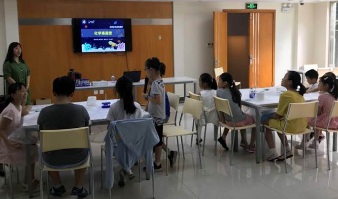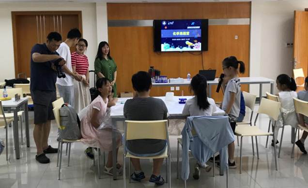 8月18日,酷炫化学小分队的科普志愿者黄金涛,马小舒,陈金凤,崔佳文给同学们带来了一场生动的动感化学课。