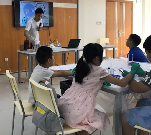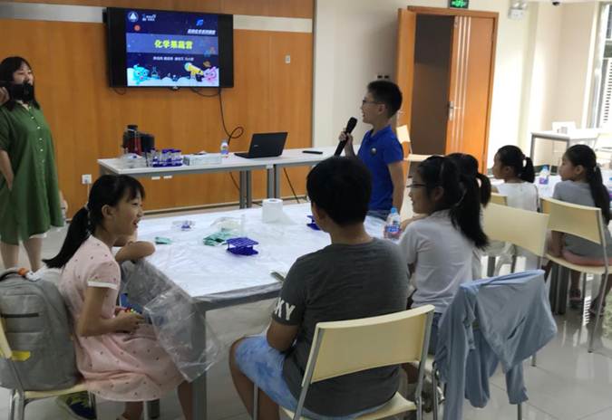 8月18日,酷炫化学小分队的科普志愿者黄金涛,马小舒,陈金凤,崔佳文给同学们带来了一场生动的动感化学课。