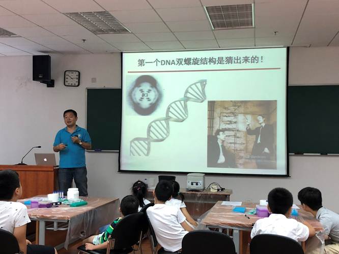 首先,周佳海研究员从我们所参与的人工合成牛胰岛素的科研工作拉开了课程的帷幕,然后再提出其实我们的思考也是通过基因控制的,让同学们通过联系我们的生活,对于基因产生一个初步的认识。随后周佳海研究员给同学们介绍了一些儿童基因检测项目。比如词汇发音能力、听力、阅读和数学能力等等。