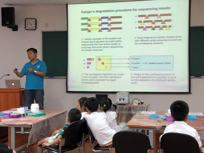 然后周佳海研究员再用搭小积木做类比,生动形象地给同学们介绍了sanger基因测序的原理。