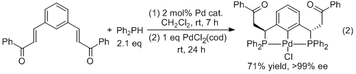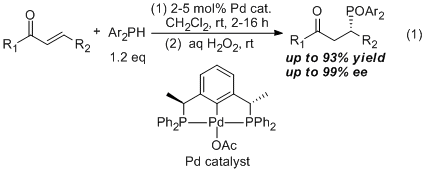 反应式 1:钯催化二芳基膦氢化合物对β-取代烯酮的不对称加成反应