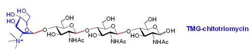 近来,上海有机所生命有机化学国家重点实验室俞飚课题组发展了新一代的糖苷化反应:以糖基邻炔基苯甲酸酯为给体的一价金催化的糖苷化反应。使用该反应他们完成了一系列活性寡糖和糖缀合物的高效合成,如四糖抗生素TMG-chitotrimycin(J. Am. Chem. Soc., 2009, 131, 12076-12077)。