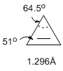 1922年,Demyanov等人第一次制备分离了环丙烯分子。作为最小的环状烯烃,环丙烯是一类较易制备的,具有高张力的化合物。环丙烯分子的张力为228 kJ/mol,大大高于环丙烷的118 kJ/mol,这使得该化合物具有极高的反应性以释放环张力,从而发生普通烯烃和环丙烷所不能发生的反应,对其反应性能研究也更具挑战性。环丙烯在发生Diels-Alder反应时释放110 kJ/mol的张力,是一类极为优秀的亲双烯体。虽然环丙烯的π键较弱,但是其碳=碳双键却有着较短的键长(1.296Å),表明了其电子云排布的弯曲交盖,对三十四类环丙烯化合物的结构研究表明,环丙烯的不饱和碳为sp1.19杂化,具有强烈的s (43%)轨道特性,在某些程度上可以看做炔基的等价物;其饱和碳为sp2.68杂化,也具有相对较强的s轨道特性(图1)。