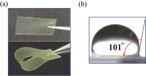 图2 PFN薄膜(a)和薄膜接触角(b)