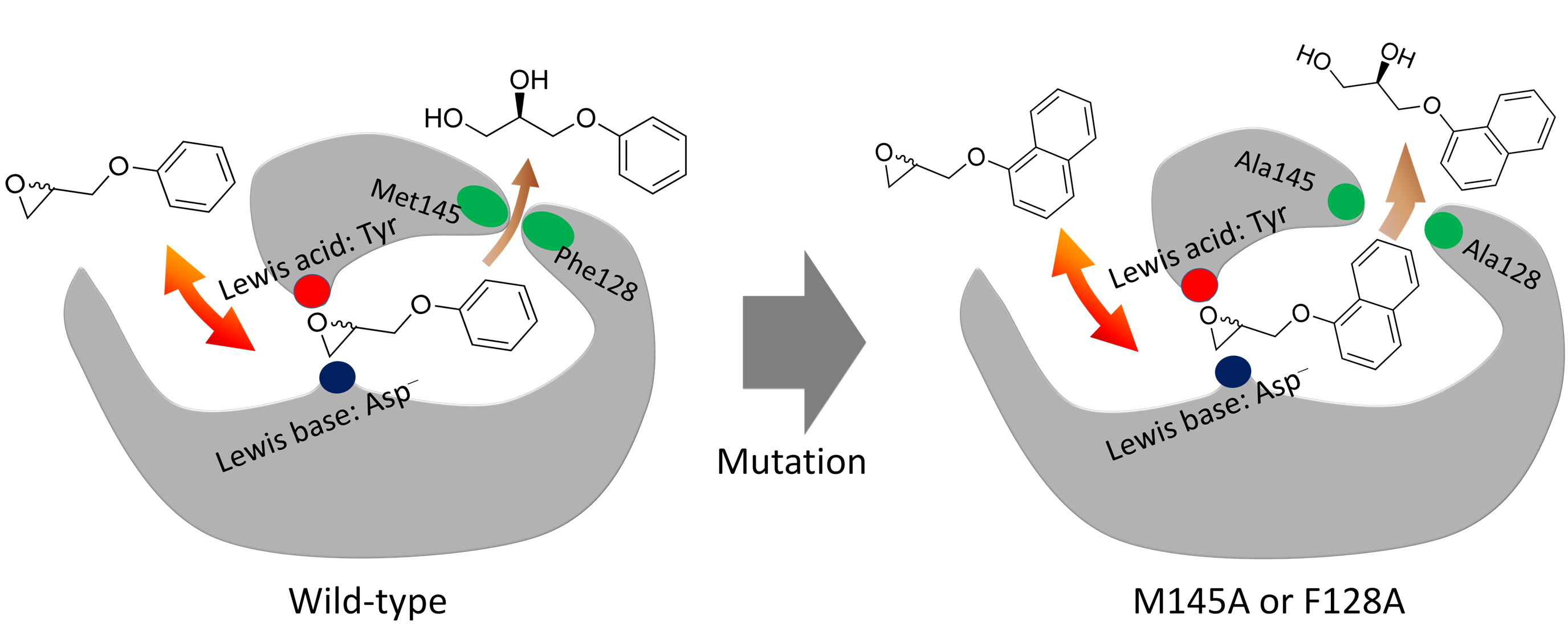 环氧水解酶催化环氧化物的立体选择性水解,得到光学纯产物可用于手性药物的制备。天然来源的环氧水解酶不具备在药物合成中的广谱性,特别是对一些大位阻底物只有很低的催化活性和立体选择性。传统的蛋白质工程改造研究基本都集中在底物进入通道以及酶催化活性中心区域上。在本研究中,研究人员首先解析了来源于巨大芽孢杆菌的环氧水解酶BmEH的母体及其与底物类似物复合物的高分辨率晶体结构,然后从结构信息和酶动力学数据出发推测该环氧水解酶存在独立的产物释放通道,与现已报道的环氧水解酶结构有显著差别。该观点得到了蛋白质质谱、突变体三维结构、分子动力学模拟等实验结果的证实,揭示了酶的活性中心与产物释放通道之间的区域是影响催化活性的瓶颈位置。针对新发现关键位点的定点突变可大幅提高酶对大位阻底物的催化活性和立体选择性,其中对心血管药物分子普洛奈尔手性前体的拆分效率提高达100倍。在此基础上对这些位点进行饱和突变可以量身定制出不对称合成其他心血管药物β-阻断剂药物前体的环氧水解酶突变体库(Angew. Chem. Int. Ed., 2014, 53, 6641–6644),有关工作被SynFact 2014, 10(8), 0886作为亮点报道。