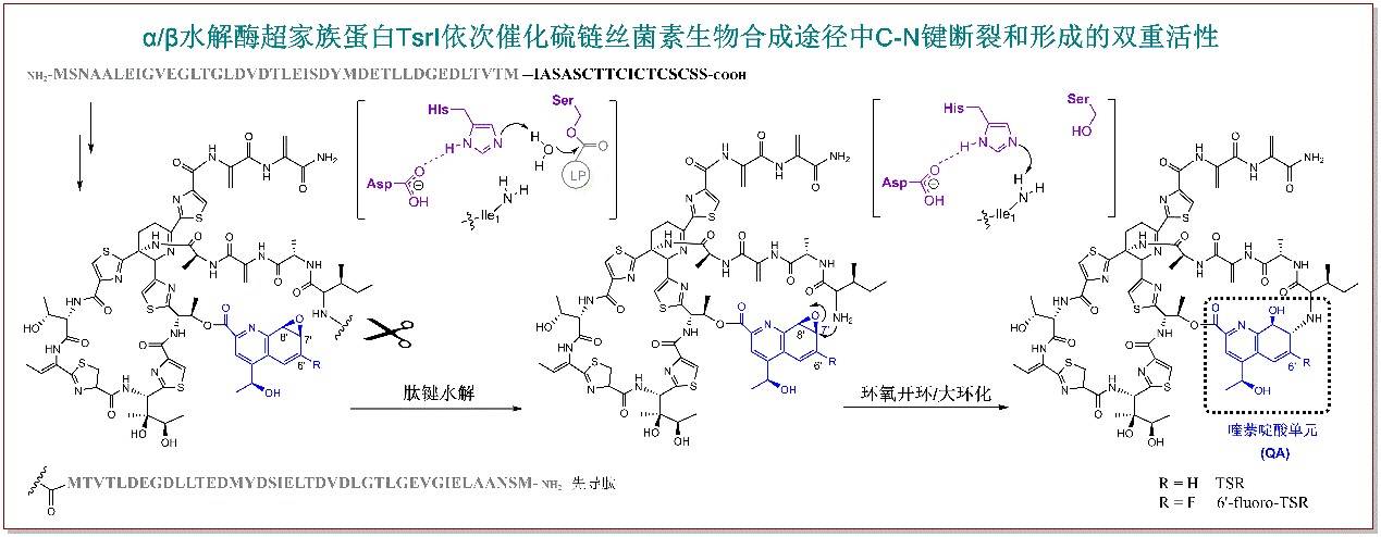 α/β水解酶超家族蛋白TsrI依次催化硫链丝菌素生物合成途径中C-N键断裂和形成的双重活性