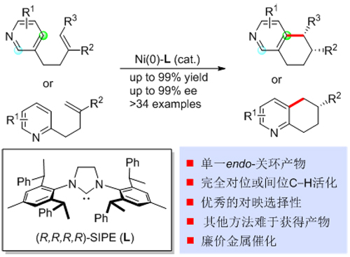 图一.镍催化吡啶区域和对映选择性C-H环化反应