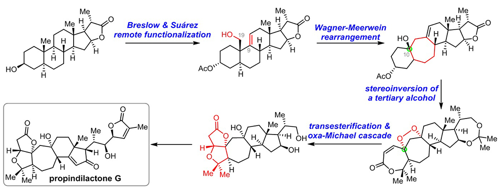 图2. 降三萜天然产物propindilactone G的仿生合成
