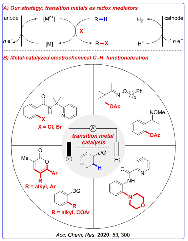 图一、电氧化促进的金属催化的碳氢键官能团化反应