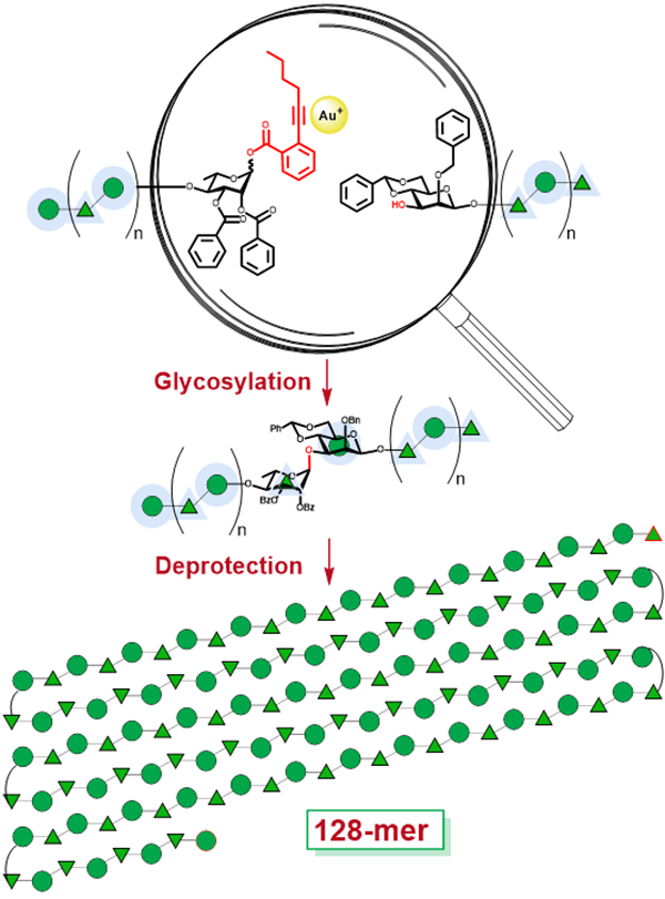 本图来自该论文的“Behind The Paper” (链接:https://chemistrycommunity.nature.com/posts/synthesis-of-the-longest-linear-128-mer-glycan?channel_id=1465-behind-the-paper)
