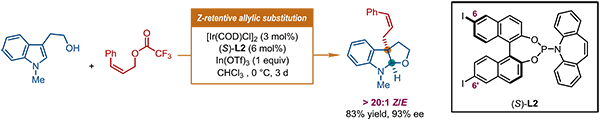 图2 铱催化吲哚衍生物的Z式保留不对称烯丙基取代反应
