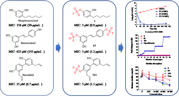 图1 基于SuFEx的结构修饰增强化合物的抗菌活性