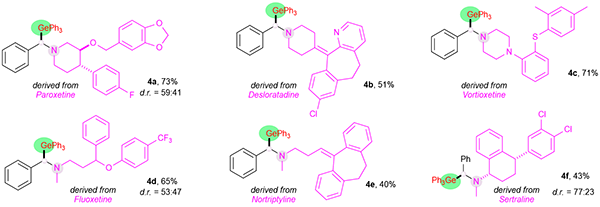 近年来,有机硅化合物引起了化学家们的广泛关注。然而,同为同族元素的锗的研究则相对较少。相比于硅原子与碳原子,锗原子具有更强的正电性、更大的原子半径与更强的疏水作用,因此向有机化合物中引入锗原子会导致独特的化学与药理学性质,具有潜在价值。结合胺类化合物的重要性,如何在含氮单元上引入锗原子,是富有学术意义和研究价值的课题。