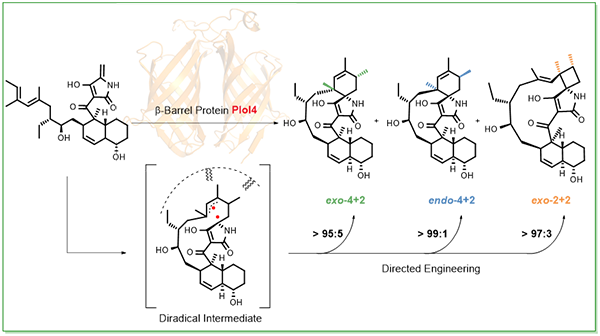 图 β-桶状蛋白催化的竞争性2+2/4+2环加成反应及基于选择性调控的定向进化